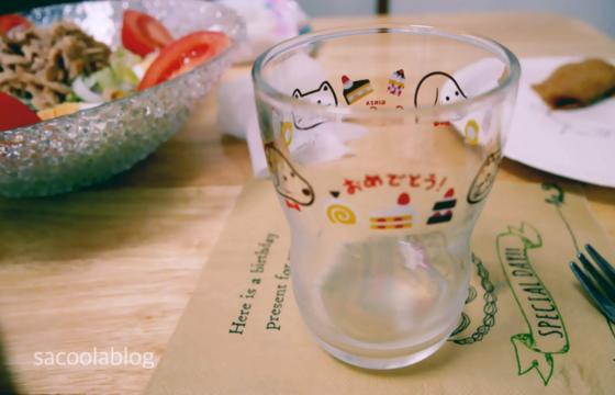 お昼のお誕生日パーティーで早速グラスを娘に出しました。
